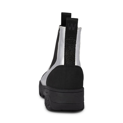 Magda Metallic Waterproof is een glanzende, duurzame, waterdichte laars gemaakt van 70% natuurlijk rubber. Bovendien is de laars vervaardigd met 10% gerecycled rubber en heeft het mooie details van vissenleer op de hiel. Een onderscheidende profielzool maakt de laars compleet voor geweldig comfort.